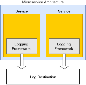 The problem with this approach is that it requires each service to implement its own logging methods. Not only is this redundant, but it also adds complexity and increases the difficulty of changing logging behaviour across multiple services.